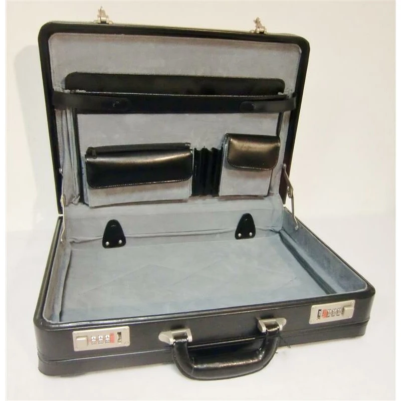 Aktenkoffer in „schwarz“ – klassisches Design, edel im Look und mit einem Innenleben, was bei die Unterbringung und Organisation Ihrer Unterlagen und wichtigen „Büro-Kleinigkeiten“ keine Wünsche offen lässt. Dank seiner Dehnfalte kann er auch einmal etwas MEHR unterbringen