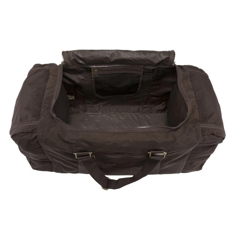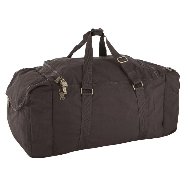 in „braun“ – ist eine sehr geräumige Reisetasche mit sehr großen Seitentaschen da passen Schuhe , Waschtasche oder Schmutzwäsche gut hinein. Die verstellbaren Tragegurte ermöglichen es die Camel Reisetasche auch als Rucksack zu tragen. Ins große Hauptfach mit U- förmigen Reißverschluß kommen die Hosen, Jacken, Shirts und Sweatshirts.