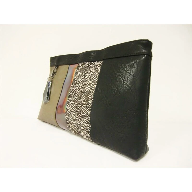 Jacky & Celine Pochette / Handtasche in „black-mix“ – total trendig und gefragt sind diese Taschen ohne Henkel oder Griff. Sie werden lässig in der Hand getragen oder unter den Arm geklemmt. Platz bietet sie ausreichend. Der gelungene Farb – und Materialmix aus Leder, Stoff und metalligen Elementen machen dieses Bag zu einer auffälligen und sehr eleganten Tasche.