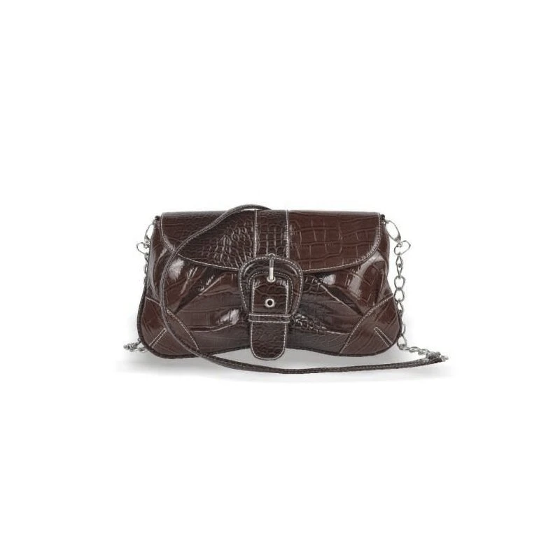 Zu dieser Krokolederlacktasche (Syntetisches Leder!!) bekommt man 3 verschiedene langeTrageriemen. Man kann sie am Handgelenk, kurzhenklich, sowie mit einem langen Umhängeriemen tragen. Und man kann sie auch als Clutchbag tragen – einfach am Armgelenk .