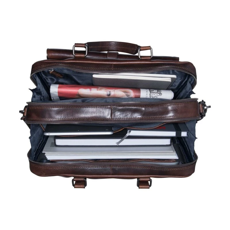 eine Aktentasche von Leonhard Heyden aus der Serie Roma aus einem traumhaft schönen Rindsleder in hochwertiger Verarbeitung. Im Gebrauch erhält diese Aktenmappe ihre individuelle Haptik. Diese Aktentasche bietet zwei große Hauptfächer, ein Notbookfach bis 15″, eine große Vortasche, Außenreißverschlussfächer und diverse Steckfächer innen. Zwei Aktenordner, Laptop, Bücher und Hefter finden ihren Platz in dieser kompakten Mappe. Um so länger sie im Gebrauch ist um so schöner wird sie, sie erhält ihren individuelles Aussehen.