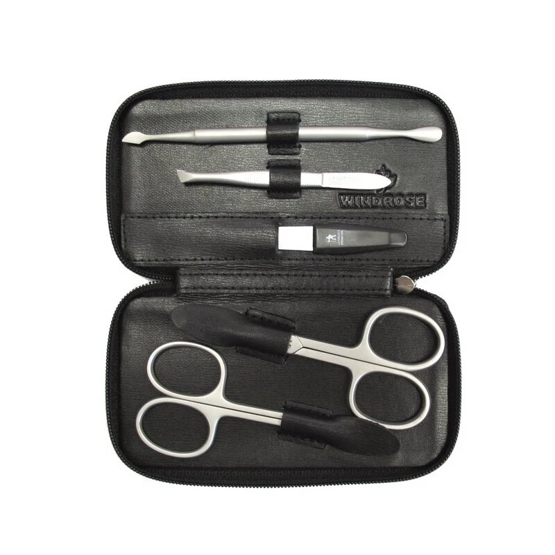 Windrose Manicure Rindleder / Maniküre-Set in schwarz